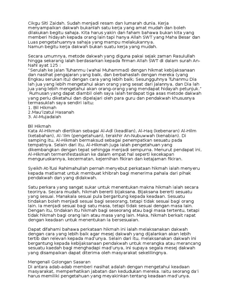 Hal ini dilakukan untuk memenuhi tujuan dari islam. Jika kita melihat kandungan ayat tersebut ada tiga tahap yang diajarkan al-Quran untuk berdakawah dengan baik. Cara Duduk Dalam Solat Yang Betul.